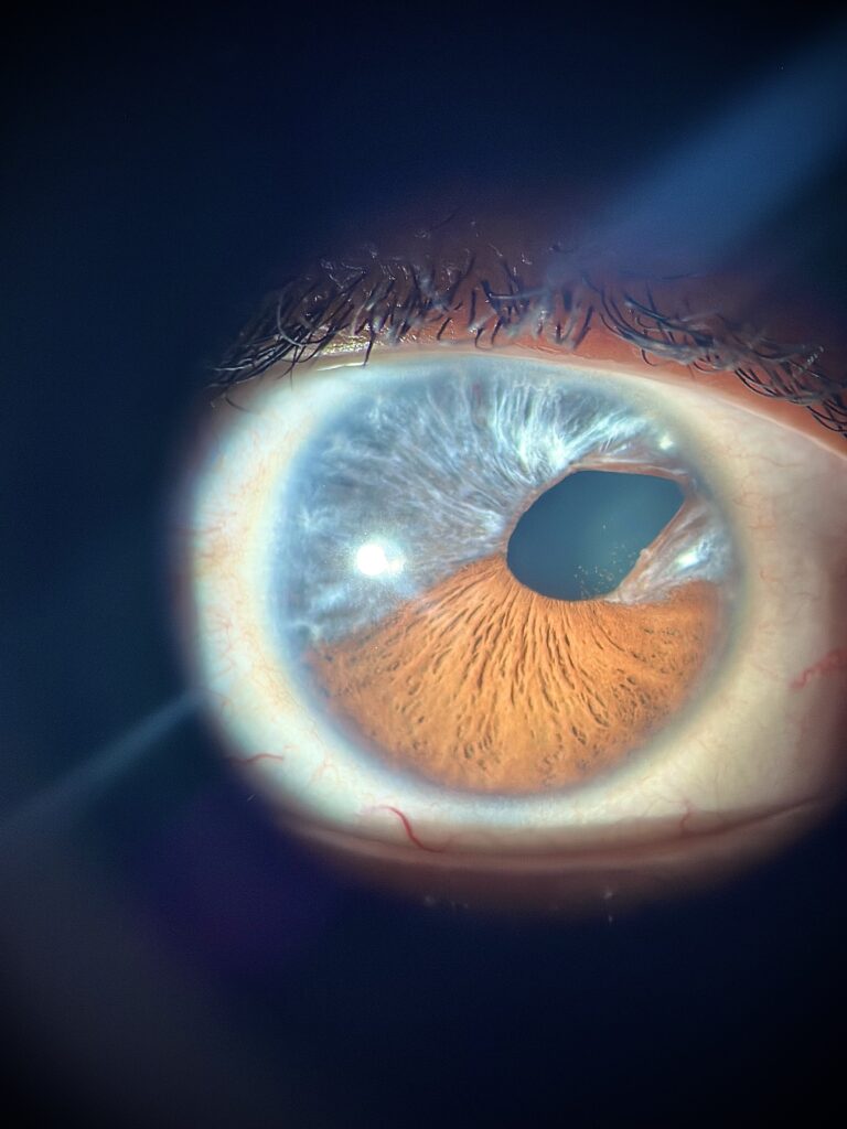 Corectopia e hipoplasia de iris – “Distorted reflection”