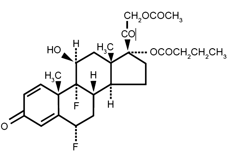 El difluprednato es un medicamento sintético difluorinado derivado de la prednisolona. Originalmente fue desarrollado para aplicaciones dermatológicas por Mitsubishi Pharma; no obstante, con base en sus resultados clínicos, el producto fue catalogado como un corticosteroide “muy potente”. En su formulación dermatológica, el difluprednato 0.05 % fue 4 veces más potente que el acetato valerato de prednisolona 0.4 %, y 3,200 veces más fuerte que la prednisolona 0.5 %, usando la vasoconstricción periférica. En esta presentación, su potencia fue aproximadamente la misma que la betametasona [1,7]. La molécula obtiene su potencia mediante la fluoración en las posiciones C6 y C9. Su actividad antiinflamatoria se ve adicionalmente aumentada por la sustitución del grupo hidroxilo en la posición 17 por un butirato, mientras que su lipofilicidad y, por ende, su penetración corneal, se incrementa mediante la sustitución del grupo hidroxilo en la posición 21 por un acetato [8].